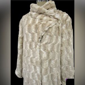DENNIS BY DENNIS BASSO BEIGE MIX FAUX FUR LONG SLEEVE COAT SIZE XL - NWOT