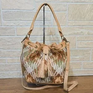 Genuine Leather Woven Bucket Bag Boho Tassel Drawstring Convertible Crossbody