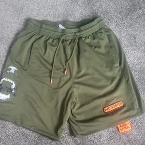 This is a used pair of used Nike dri-fit basketball shorts. They are a size medium and have a drawstring waist. They also have a zippered pocket on one side. The last two pictures show some imperfections on the shorts. One is of a stain. I am not sure what it is or if it will come out. It is located by the waistband where a t-shirt would cover it. The other picture is of a small pic in the fabric. It is tiny, but I try my best to document any issues with clothes that I have for sale. If you have questions, please don't hesitate to ask.