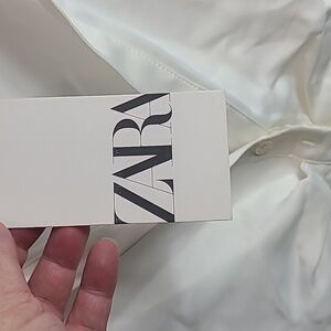 NWT Zara Button Down Ruched Satin Effect Shirt LARGE