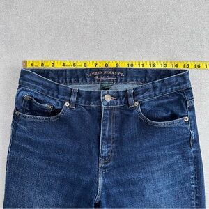 Lauren Ralph Lauren Classic Bootcut Jeans. Dark wash. Size 8. Pre owned. No stains. See photos for approximate measurements. See last photo for minor flaw (snag in denim).