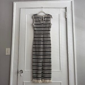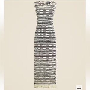 J. Crew Black and Cream Striped Crochet Midi Dress - XXS