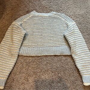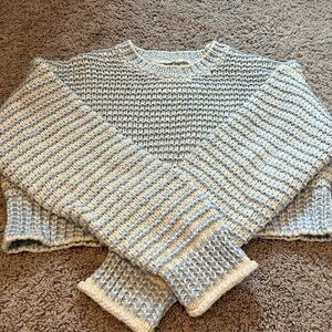Beautiful LoveShackFancy Koa cropped cotton sweater in the shade Ocean Pearl, size XS. This dreamy blue-and-white woven knit has a slightly boxy, perfectly cropped fit that pairs with everything. Lightly worn with very minor pilling, but nothing noticeable — still in gorgeous condition. Soft, cozy, and such a pretty statement piece for any season.