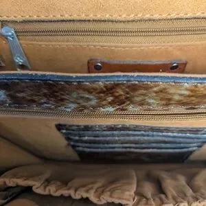 Closure: The main closure is a flap with a buckle design, and it often includes a side zippered pocket inside.