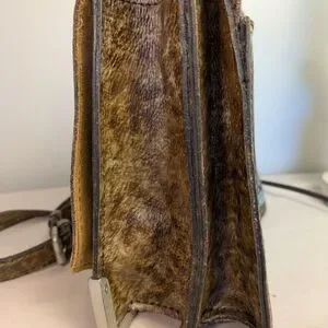 Patricia Nash Brn Leather Stella Flap HandBag w/Intriquite Blue Floral Tooling