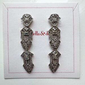 Elegant intricate crystal chandelier style drop earrings to add drama to any outfit. These classic Art Deco inspired earrings can be worn in three ways! Each tier is removable to allow for adjusted chandelier length and style mood. Never worn and comes in original box.