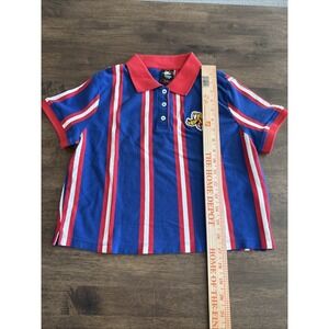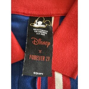 Disney X Forever 21 Pluto Striped Polo Shirt Blue Red Youth Large Y2K Collab