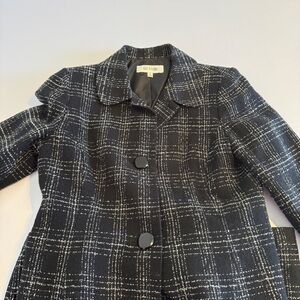 Suit Studio Sz 8 tweed Blazer/skirt set Collared Black White Womens Workwear