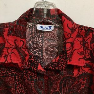 Blair Women’s Red Paisley Long Sleeves Button Down Shirt, red/black color, size Medium. Approximate measurements: chest (pit to pit) 22”, length 25”. ***Bundle to save on shipping and get 10% discount. The discount will appear automatically in your basket during checkout if you have 2+ items from my closet.