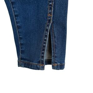 A classic medium-dark blue wash with subtle fading makes them a perfect staple for all seasons. Features a mid-rise fit, soft stretch denim, and stylish ankle slit detail for a modern touch.