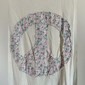 Soft light green/blue peace sign dress by Blue Velvet. Comfortable and stylish.