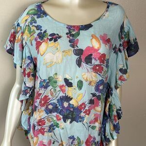 ZAC & RACHEL woman floral ruffle gauze blouse shirt top size 2X flowy vacation