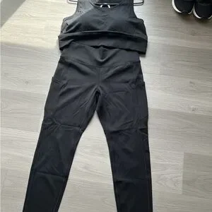 Sleek black activewear set. Includes a sports bra and leggings. Perfect for workouts.