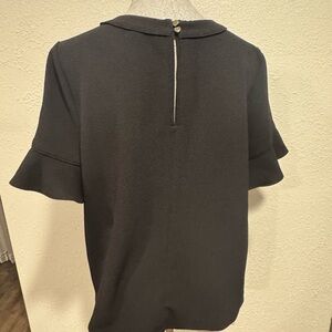 Lark & Ro Elegant Black Ruffle Sleeve Top with gold buttons on back Sz L