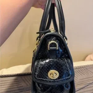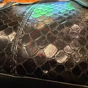 Beautiful bag with minor signs of wear. The leather is cowhide cut into reptile pattern.