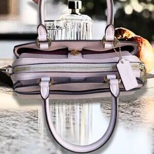 COACH Leather Washed Mauve Mini Lillie Carryall Golden Hardware Feet NWT