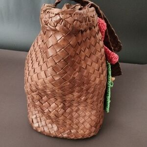 Paolo Masi Brown Tote with Colorful Floral Accents