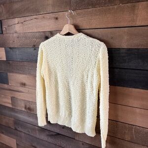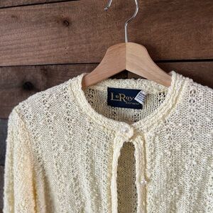 Vintage LeRoy Knitwear Cream Textured Cardigan Pearl Buttons Soft Knit L