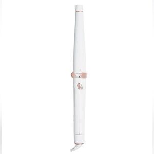 T3 SinglePass Wave Professional Tapered Ceramic Styling Wand. The 1.25- to 0.75-inch tapered T3 custom blend ceramic clip barrel glides smoothly through hair to create a frizz-free, shiny finish that lasts. Designed with five adjustable heat settings (260 to 410°F), this wand offers maximum styling versatility, providing the optimum heat level for any hair type. Only used a handful of times. Excellent condition, but no original box.