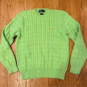 Bright lime crewneck with classic cable knit. Iconic Ralph Lauren style. 100% cotton. Beautiful
