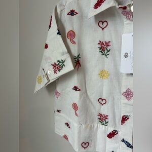 Charming NWT designer size S shirt featuring colorful embroidery on an off white base. love the pattern! Bundle other NWT designer clothes, bags, jewelry and more from my closet for an offer! I ship same or next day and update my closet daily