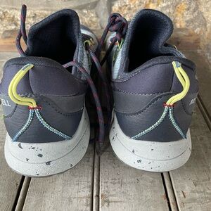 Experience ultimate comfort with Merrell athletic shoes. Navy and gray mesh design. Ideal for workouts and casual wear.