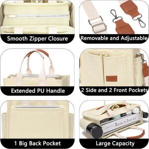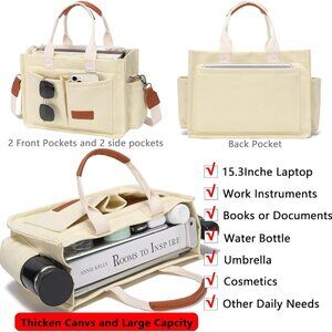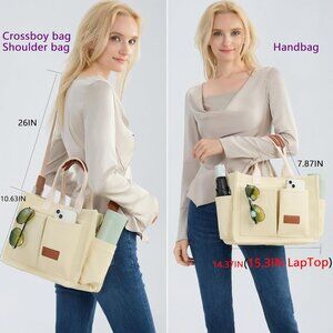 Women's Upgrade Beige Imported Canvas Laptop Crossbody Work Large Tote Handbags