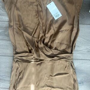 NWT Vince Bronze Twist Front Sleeveless Silk Blend Dress