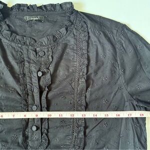 J.Crew Ruffle Eyelet Long Sleeve Shirt Black Cotton Small