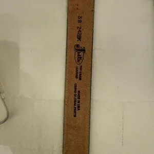 Classic black leather belt by Justin Boots. Durable and stylish for everyday wear. 38” with easy snaps for changing belt buckles