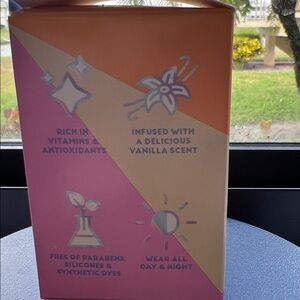 Rich in vitamins and antioxidants, infused with a delicious vanilla scent, free of parabens, silicones and synthetic dyes. Wear day and night