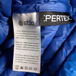 Stio Pinion Down Hooded Men's L Blue Goose Down Pertex Outdoors Puffer Jacket