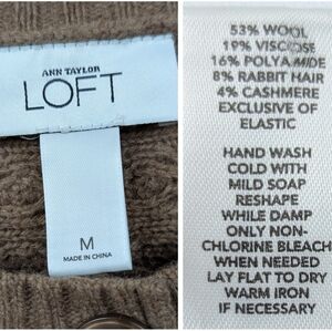 Ann Taylor Loft Cardigan Sweater Cable Knit Cashmere Blend Button Front Brown M