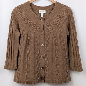 Ann Taylor Loft button front cable knit wool blend sweater in brown.