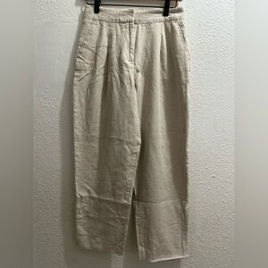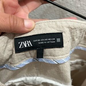 Zara Women XS Linen Blend Straight Trouser Beige HighWaist Classic