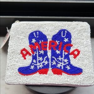 LCD HAND CRAFTED RED, WHITE and BLUE BEADED LIMITED QUANTITY ZIP POUCH