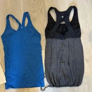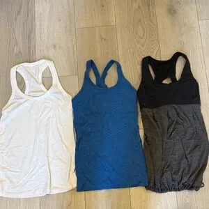 A vibrant activewear bundle featuring tank tops, shorts, and leggings (4 tops, 4 bottoms, 1 sports bra). Includes basic colors like pink, blue, black, gray, and white. Perfect for mix and match to level up your workout wear. All Lululemon, all in size 4. Bundle deals = max savings when shopping my closet.