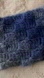 Plush crochet infinity scarf in denim blue and charcoal grey hues. Approximate dimensions 36” x 11”