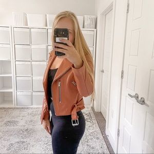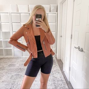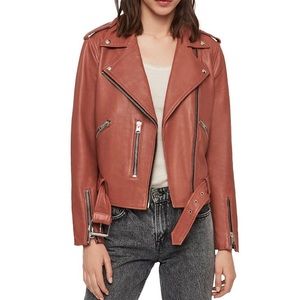 All Saints Balfern Leather Biker Jacket Rose Wood