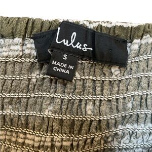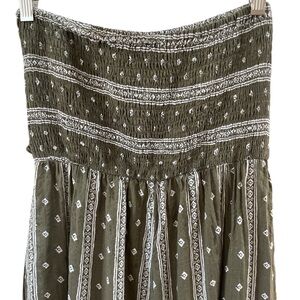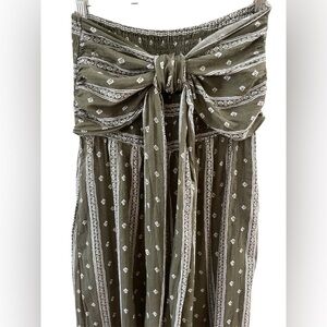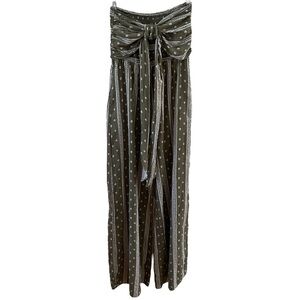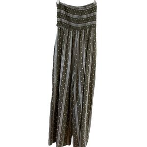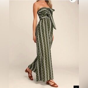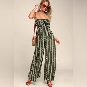 Lulus Raine Olive Green Print Strapless Jumpsuit Wide Leg Small Boho