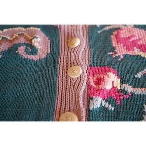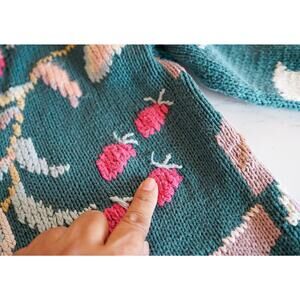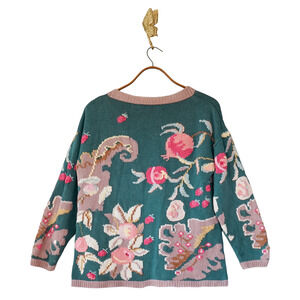 VTG 80s Peruvian Connection Floral Fruit Chunky Handknit Cardigan M Cottage Farm