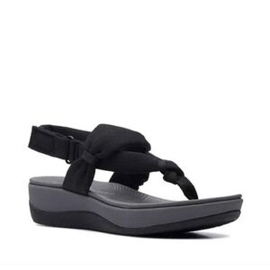 Clarks Arla Nicole Sandals. Women's size 9. Preowned in good condition. These great fitting Cloudstepper sandals are a must have for summer with their lightweight, stretchy fabric uppers. This sandal combines a sporty look with a soft, comfy feel making it perfect for travel or everyday wear.