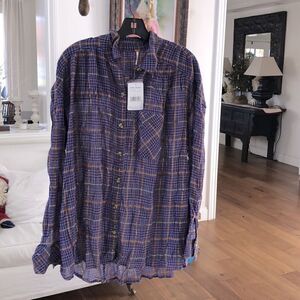 Free People Womens Spread Button Closure 99% Cotton 1% Metallic Chest Pocket. Extra Button(s) Plaid All Seasons. Light Weight. Long Sleeve Casual