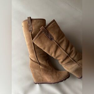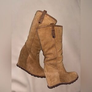Step out in style with these chic tan suede boots. Perfect for any occasion, they offer both comfort and elegance