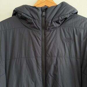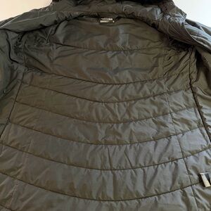 This jacket is missing the attached faux fur on the hood, but it is not noticeable