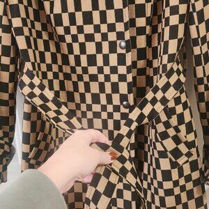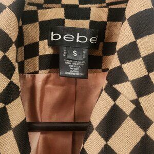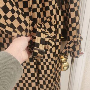 Bebe Wool Belted Trench Coat Checkered Print Fully Lined US Size S (SMALL)