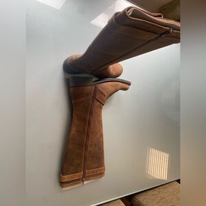 Step out in style with these elegant brown leather knee-high boots. Perfect for any occasion, they offer both comfort and sophistication.