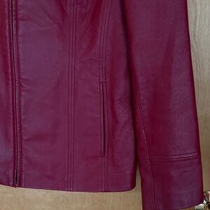 Stylish red leather jacket by Covington. Perfect for adding flair to any outfit.