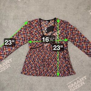 The Kooples brand floral-print, boho blouse, new with tags and originally priced at $270. The Kooples blends French chic with edgy modern style, creating pieces that stand out for their craftsmanship, tailoring, and vibrant prints.