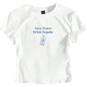 Women's Y2K Slim Fit Crop Top Tequila Print Short Sleeve Casual